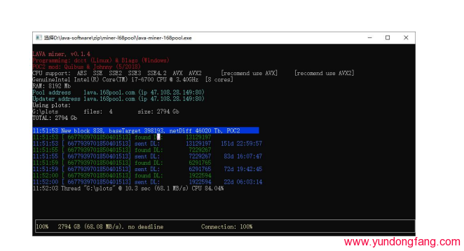 P盘建议用显卡P,用CPU都会比较慢。P完后就开始挖矿了。