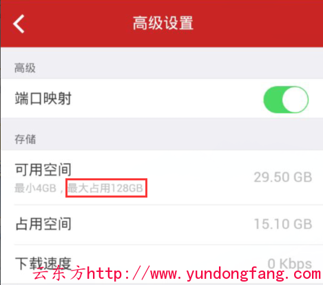 更新说明:赚钱宝更新到最新固件以后在高级设置界面中的存储中就可以看到最大占用128GB,这个基本上可以说明赚钱宝最大就支持128GB。