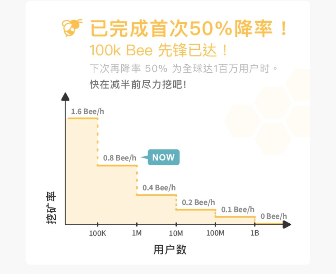 从现在起,基本采矿率将从0.8->0.4蜜蜂/小时调整。推荐率将相应调整,从0.2->0.1蜜蜂/小时/活跃矿工在您的团队